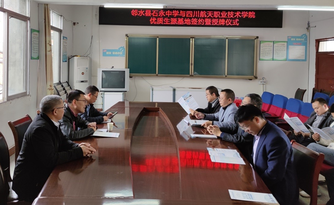最后,双方签订了优质生源基地合作协议,戚炎副院长代表学院向石永中学授予“四川航天职业技术学院优质生源基地”牌匾。