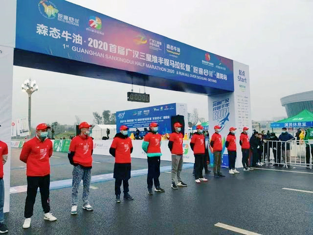 此次赛事,我校师生积极响应,共派出200名学生参与志愿服务。志愿者们一队25名服务者分别在起点负责做好赛前选手入场检录、咨询工作和礼仪工作和终点带领完成比赛的选手领取赛后补给、到拉伸区进行拉伸恢复、为获奖选手提供颁奖服务;二队约80名志愿者在跑道,做好选手的道路指引以及情况观察,随时报告选手的突发情况,全程陪伴选手完赛为他们加油助威。三队67名演员在三星堆展示古蜀文明、三星神韵,为选手们鼓劲加油。