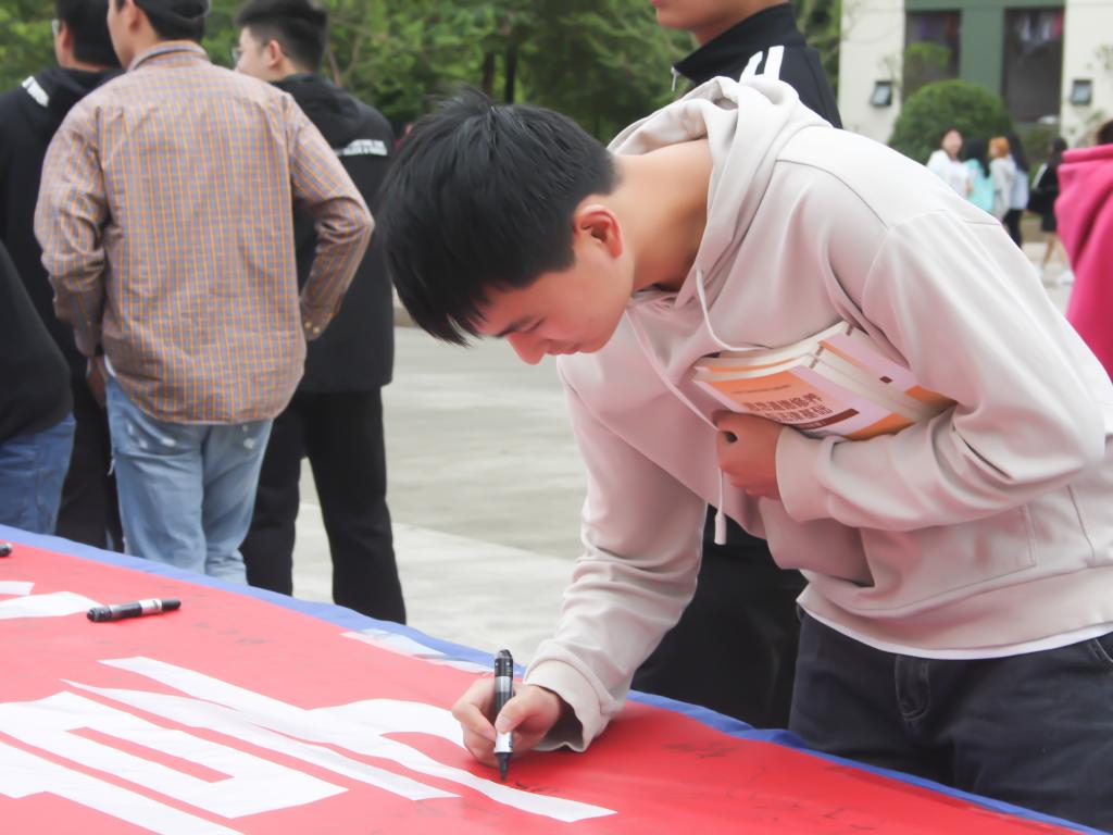 上午十点,签名活动正式开始,现场热闹非凡,来往的同学络绎不绝。工作人员向大家介绍了本次读书活动的内容和意义,号召大家趁着时光大好,多来图书馆,遨游书海,勤于学习,敏于求知,为不负青春而读书,为实现梦想而读书,为中华复兴而读书!师生们积极响应,纷纷在横幅上签上自己的名字,留下深深的祝福。