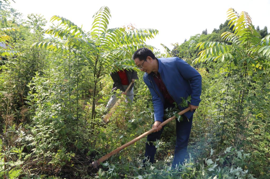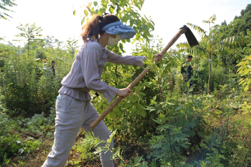 上午9点左右,师生们来到属于我校的5号植树点,龙泉山森林公园的工作人员就立马开始对大家进行了除草、松土和施肥的示范教学。老师和同学们都认真地学习,示范完后大家立马行动起来。师生们拿锄头,拿镰刀,施肥浇水,大家分工协作有条不紊。炽热的骄阳下,师生们顶着烈日汗流满面地劳动,丝毫没有怨言,一鼓作气完成了劳作任务。现场一副忙碌景象,原本杂草丛生的树林一小时不到就已被清除干净。很快林地的小树苗也都被施过肥,浇了水。