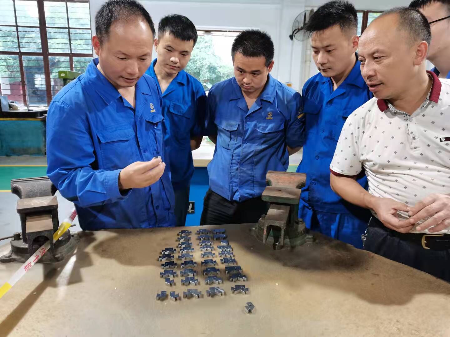 据悉,此次集训七院邀请5位钳工专家成立指导专家组,对集训工作进行专业指导,其中包括我校实训教学部高级技师张胜利、7102厂“成都工匠”周元奇、7304厂特级技师李建森、7111厂特级技师陈文志、成都航天万欣科技有限公司技术指导高级技师王斌。指导专家与选手共同拟定竞赛操作题加工方案,记录每位选手当天重点训练内容及效果进展,并根据选手自身短板针对性开展强化练习,通过每日小结发现问题解决问题,督促选手不断总结不断进步,取得良好进展与效果。