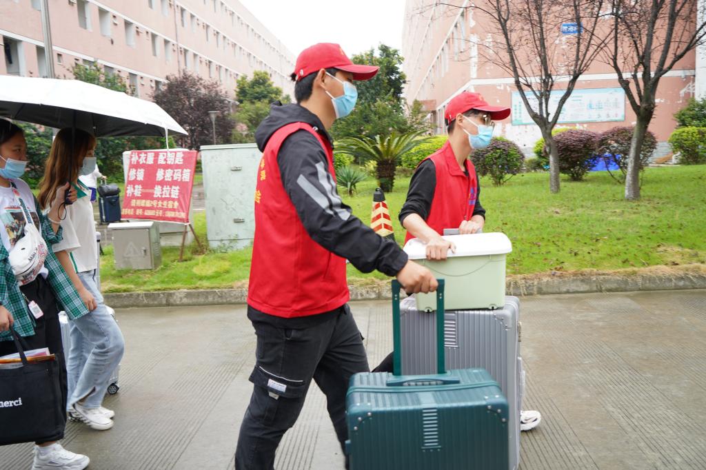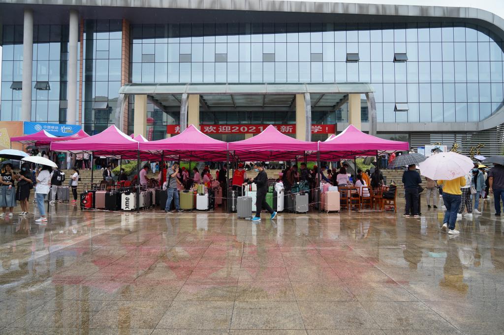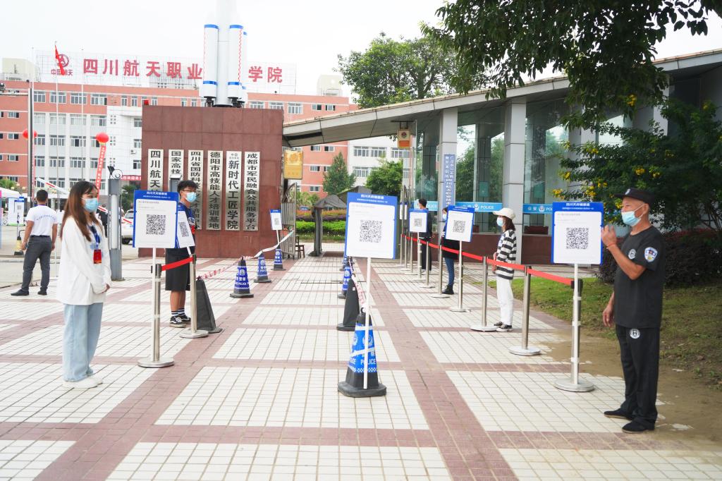 2021年8月28日至29日,在绵绵细雨中,四川航天职业技术学院迎来了2021级数千名新生,沉睡许久的校园因他们的到来也渐渐苏醒。校门外已经排起了长队,经过扫码、消毒、测体温,学生和家长依次进入了校园。