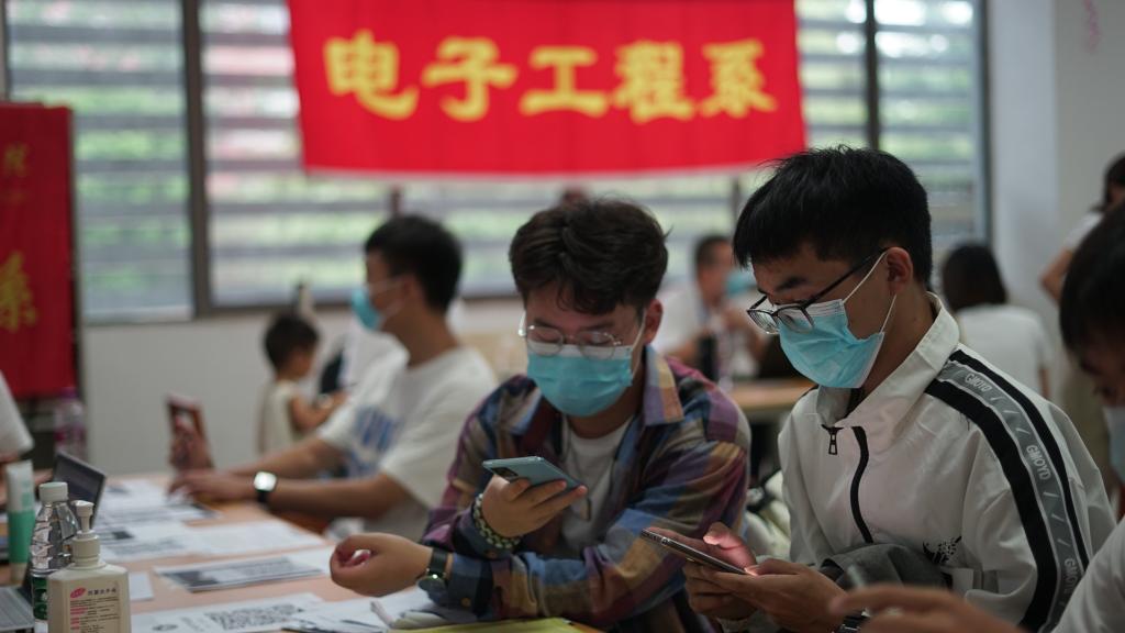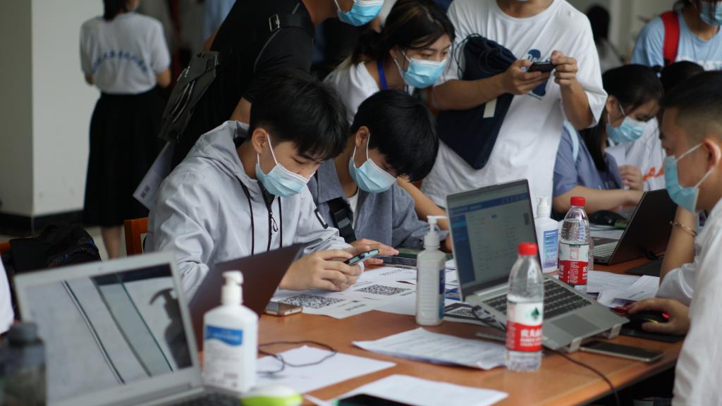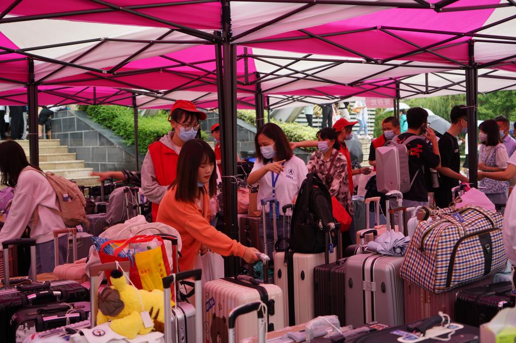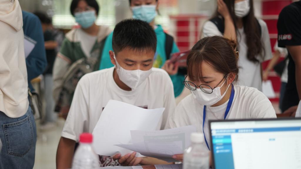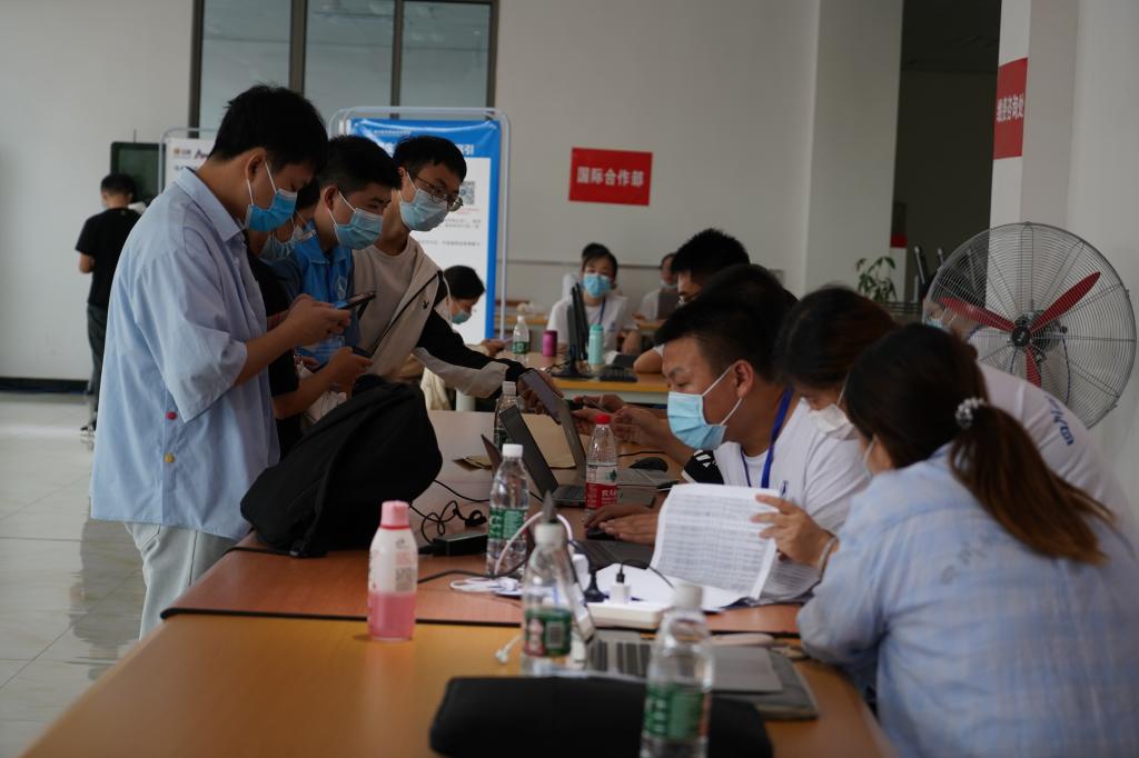 疫情期间,为了避免现场人流量过大,接触时间太久,减少新生和家长的等待时间,严格管控筑牢疫情防线。