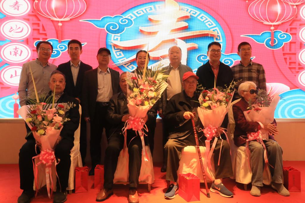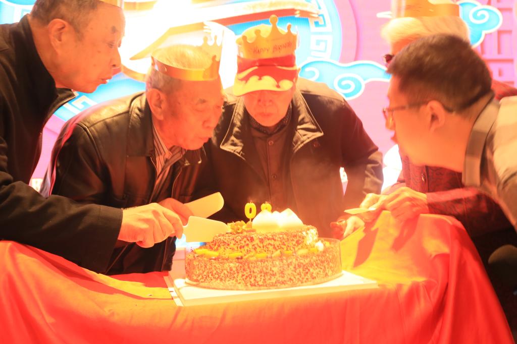 随后,学院全体领导班子为今年年满八十岁的4位寿星老人集体祝寿,为寿星们送上鲜花和礼品,寿星们手捧鲜花和礼品,共同吹灭蜡烛,分享生日蛋糕,与学院领导合影留念。
