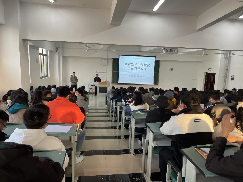 会上,吴旭首先明确了召开此次问卷调查的目的和意义,并对填写问卷做了具体说明和要求。随后,教务处处长王德佩强调,本次学生问卷调查是学院教学反馈的一个重要环节,目的是听取学生对教学、管理、服务等各方面的意见和建议,为进一步改善学习环境和提高管理水平,以学生为中心、高效的学习奠定基础。现场学生代表们如实认真地填写了调查问卷。