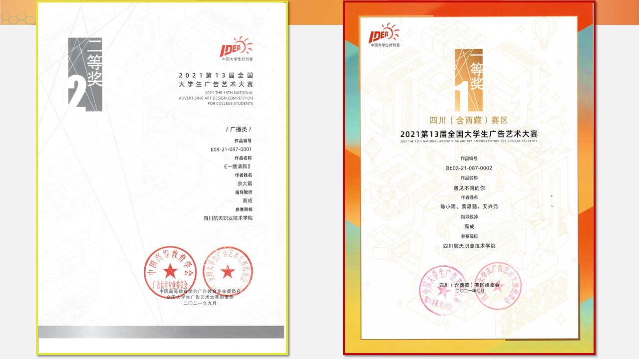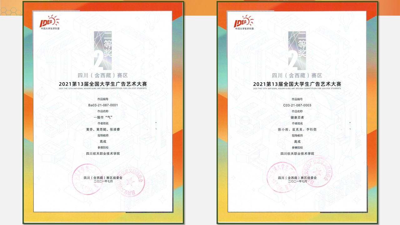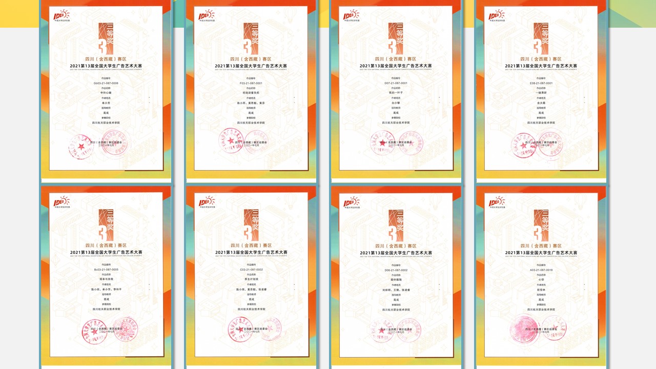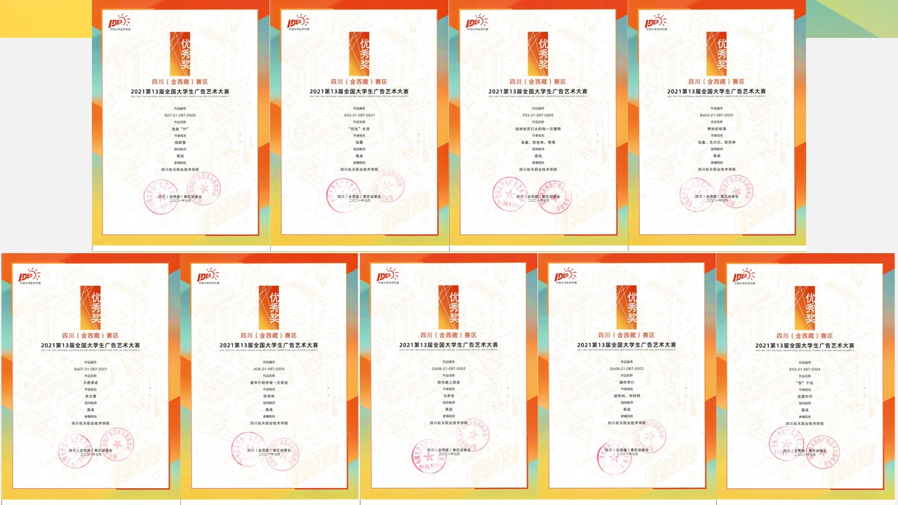 由四川省教育厅主办、四川大学承办的第七届四川大学生广告艺术大赛暨2021年第13届全国大学生广告艺术大赛于本月落下帷幕,作为“中国大学生好创意”全国大学生广告艺术大赛的有机组成部分,本届比赛竞争激烈,在数量和质量上再创新高。学院管理工程系市场营销专业师生荣获21项荣誉,包括1项全国二等奖、1项省级一等奖,2项省级二等奖,8项省级三等奖和9项优秀奖,获奖质量和数量上名列本省职业院校前茅。