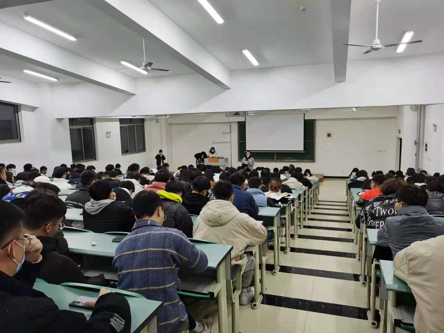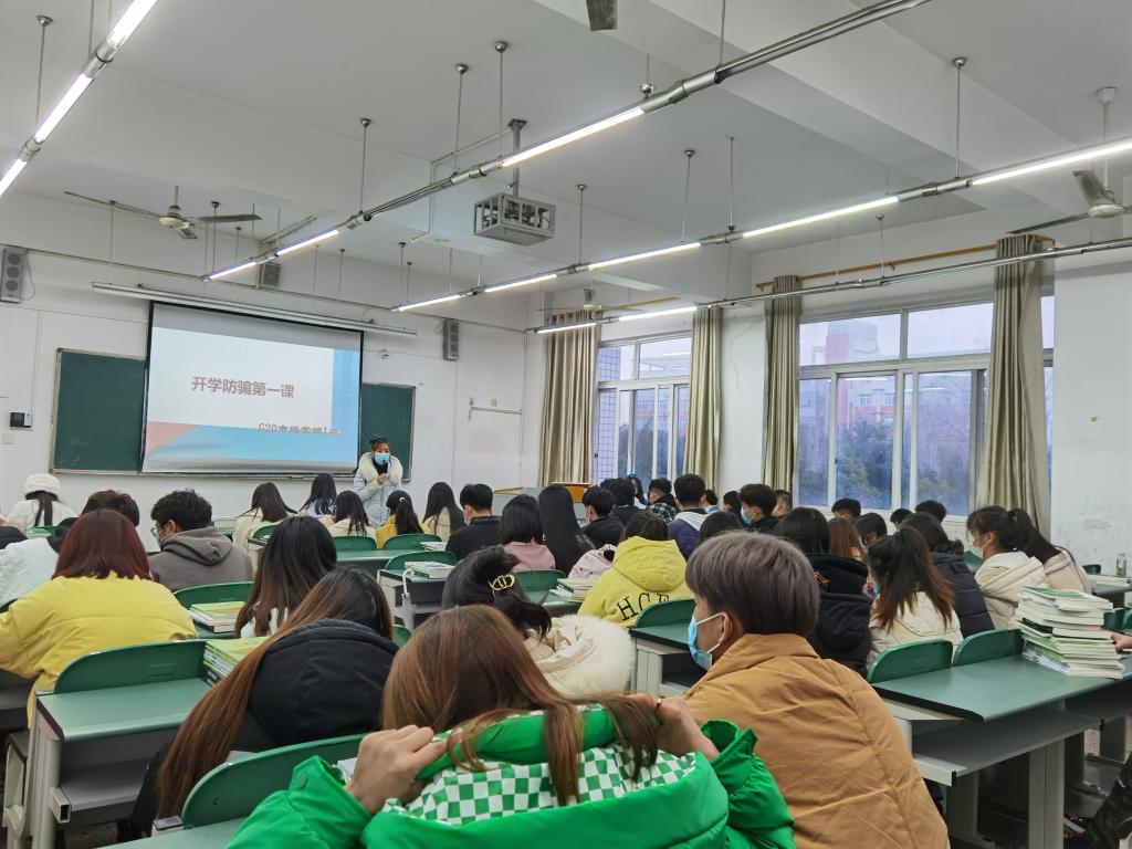 在开学的第一次班会上,辅导员们利用多媒体设备详细讲述新学期计划、防疫要求、宣传防诈、教学安排等。
