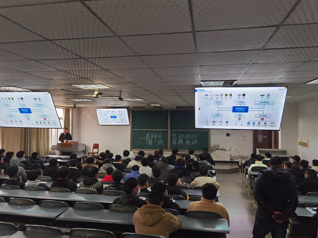 宣讲会上,负责人对公司基本情况、培训计划、能力提升、工资薪酬、住宿条件等方面进行了全面介绍。通过宣讲、答疑、选拔,汽车工程系100名学子将赴浙江吉利集团岗位实习。