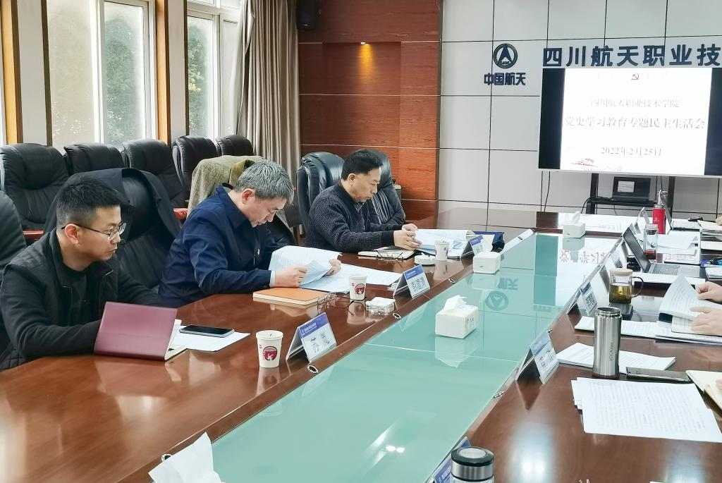 2022年2月25日上午,学院召开了党史学习教育专题民主生活会。四川航天集团党委联系领导彭建清、联络员苏胤;四川航天集团党史学习教育第三指导组组长杜强到会指导。