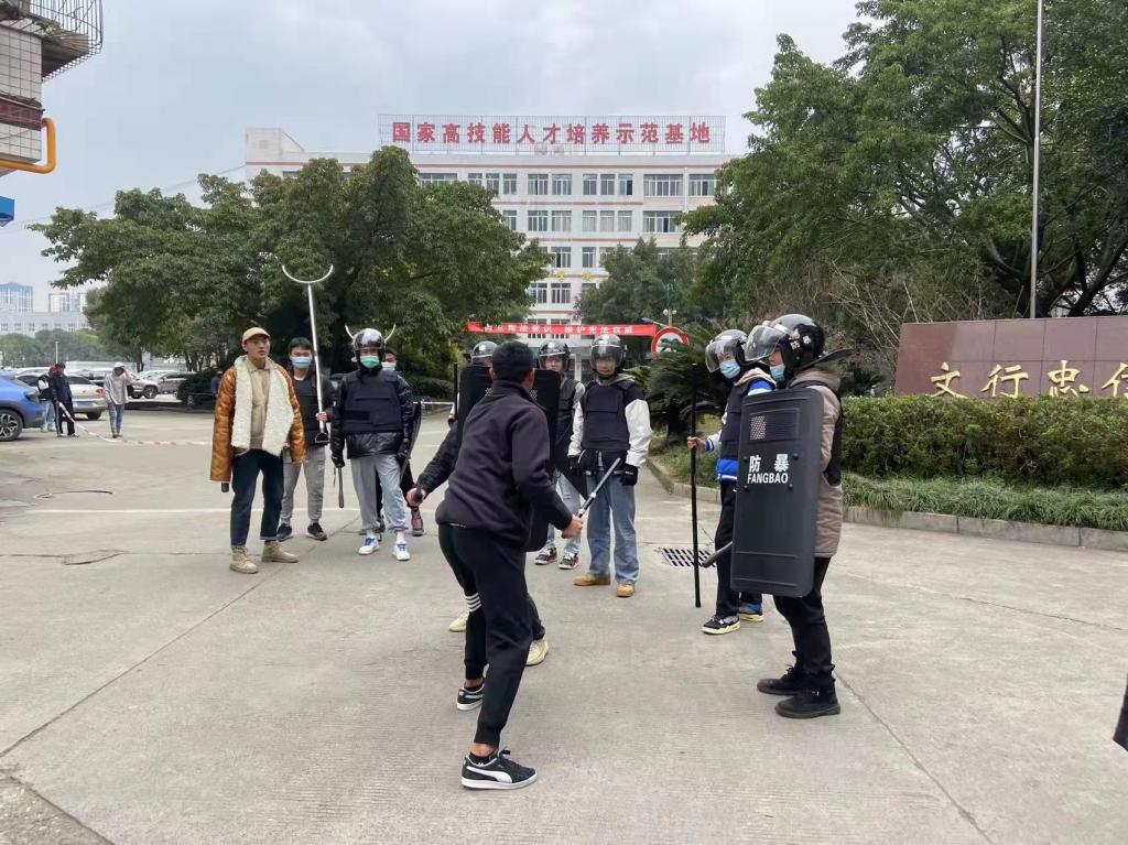 为进一步规范和加强学院安全保卫工作,增强师生反恐防暴安全意识,有效提升校园反恐防暴应急处置能力。2月24日下午,学院龙泉校区开展了反恐防暴应急演练活动。