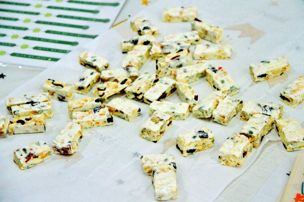 在同学们的创意之下,一个个形态各异、如碧玉般的春日限定青团被制作出来,大家纷纷品尝,露出开心的笑容。随后,在张皓南老师的带领,同学还动手制作了时下热门的网红小零食——雪花酥。压好的大块雪花酥被逐一切开、装袋,青团和雪花酥弥留在唇齿间的清香,让大家久久不能忘怀。