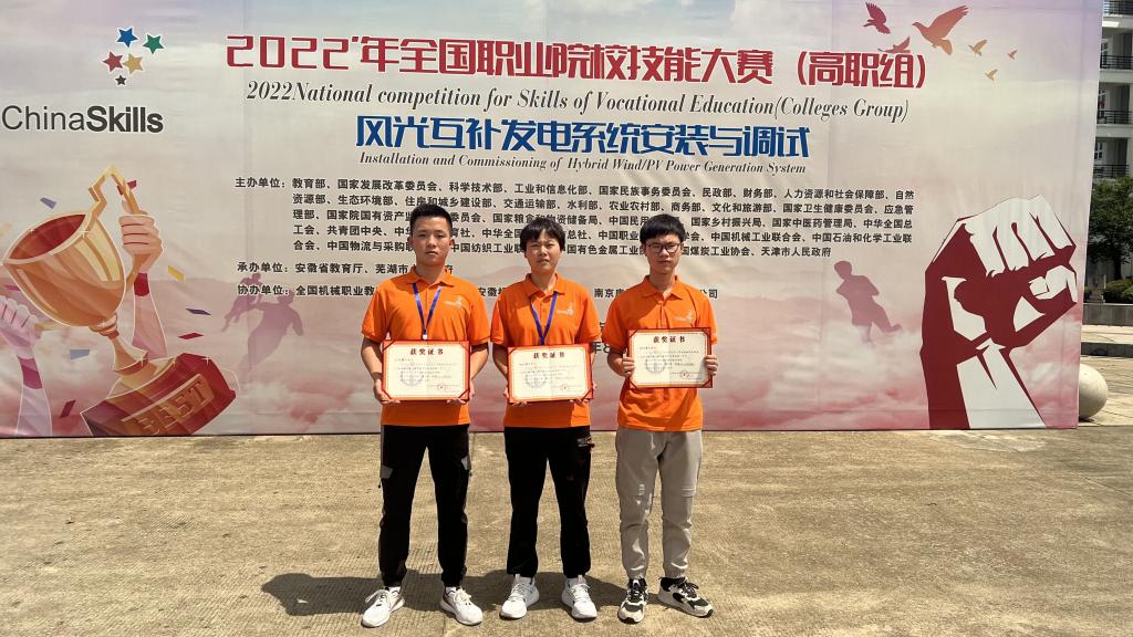2022年8月5日至7日,由教育部主办的全国职业院校大学生技能大赛风光互补发电系统安装与调试赛项在安徽省芜湖市安徽机电职业技术学院举行,来自全国48所高校参加此次竞赛,四川航天职业技术学院团队代表四川省,在激烈的角逐中,沉着面对,表现出色,从众多队伍中脱颖而出,取得该赛项二等奖的好成绩。