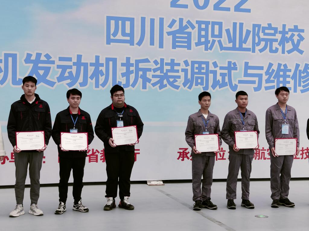 2022年11月13日,由四川省教育厅主办的四川省高职院校技能大赛“飞机发动机拆装调试与维修技能”赛项在成都航空职业技术学院圆满结束。本次比赛学院飞行器制造系派出两支队伍参赛,其中何子昂、何佳劲和甘磊团队以总分第二的成绩荣获二等奖;冯杰、向定海和赵健植团队荣获三等奖,这是学院参加此项赛事以来的最好成绩。
