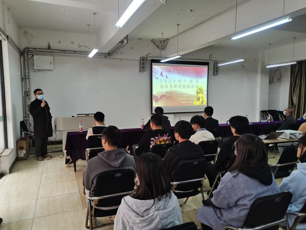 为深入推进创新创业教育,激发青年大学生创新创业热情,扎实开展创新创业活动,凝聚创新创业人才力量,广汉市人力资源社会保障局、广汉市团委、学院就业处于2022年11月17日在三星堆校区举行了第一期创业导师进校园活动。广汉市人力资源与社会保障局机关党委书记陈勋、广汉市团委副书记张惟程、中国青年创业导师团导师刘天老师以及学院创新创业俱乐部全体师生参加了此次活动。