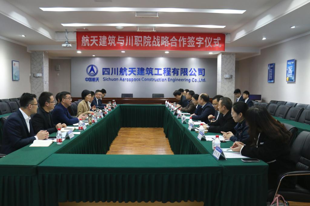 签约仪式上,双方围绕产教融合项目进行了务实的交流,何萍代表航天建筑对袁玫院长、李晓敏书记一行表示热烈欢迎,并对川职院长期以来对航天建筑的关心、支持和帮助表示衷心感谢!
