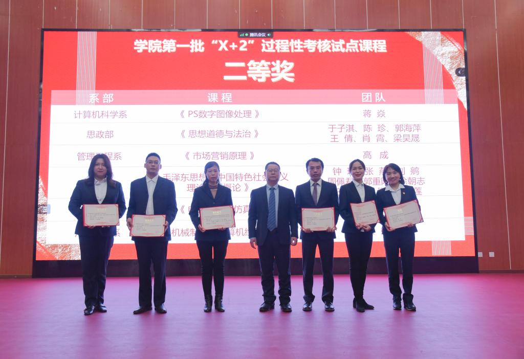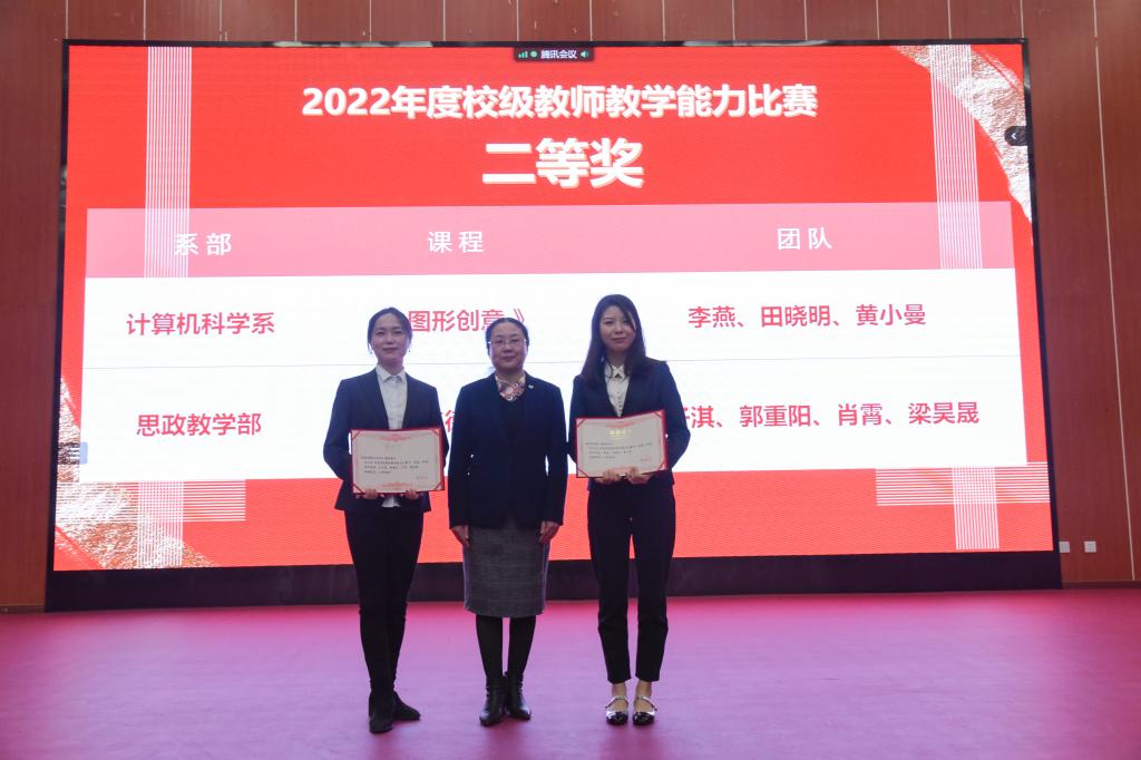 党委书记李晓敏通报了学院在2022年度获得的校外各类荣誉奖励,宣读了2022年度学院院长特别奖和学院贡献奖的表彰文件;副院长周林通报了2022年度校级各类教学竞赛评比展示活动的获奖情况。随后,在喜庆热烈的乐曲声中,举行了颁奖仪式。数十位教职工(代表)身着正装、先后登台领奖,获得了一轮轮热情鼓励的掌声,现场气氛高涨,激人奋进。