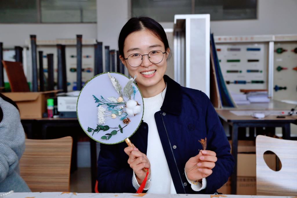 酒酿玫瑰饼、乳酪玫瑰酥,伴随着淡淡花香,浅听着悠扬的音乐,在充满古风韵味的香气里,飞行器制造系的女老师们欢聚一堂,共同庆祝属于自己的节日,从构图到色彩搭配再到粘贴制作,大家在空白扇面上摆放着各种颜色和形状的永生花进行造型设计,现场气氛温馨而又热烈,好一副微醺花酿,岁月自在的风景画。