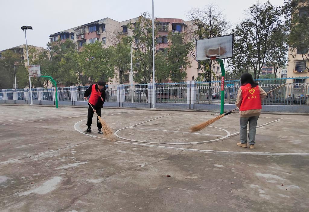 电子工程系40位青年志愿者组成的学雷锋志愿服务分队,也手持清理工具,不怕脏累,在三星堆校区内按划分好的区域,将校门口、主干道、篮球场、足球场和思源桥等校园内的垃圾清扫一空,彰显志愿情怀。