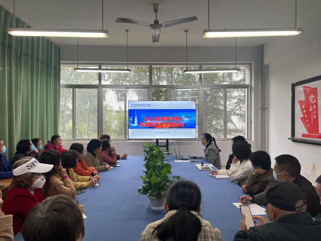 学院后勤处为全面落实“围绕一个中心,做好两个服务,三个确保,四个力争,全面五讲”的思想方针,进一步筑牢部门思想根基,强化部门全体职工的责任意识,优化后勤服务保障能力,全面复盘工作中的短板和不足,抓内建、寻思路、求突破、谋发展,按照后勤处2023年度工作计划,在两校区每月定时同步开展工作调度会,开展员工、临聘人员、第三方人员全员综合培训。