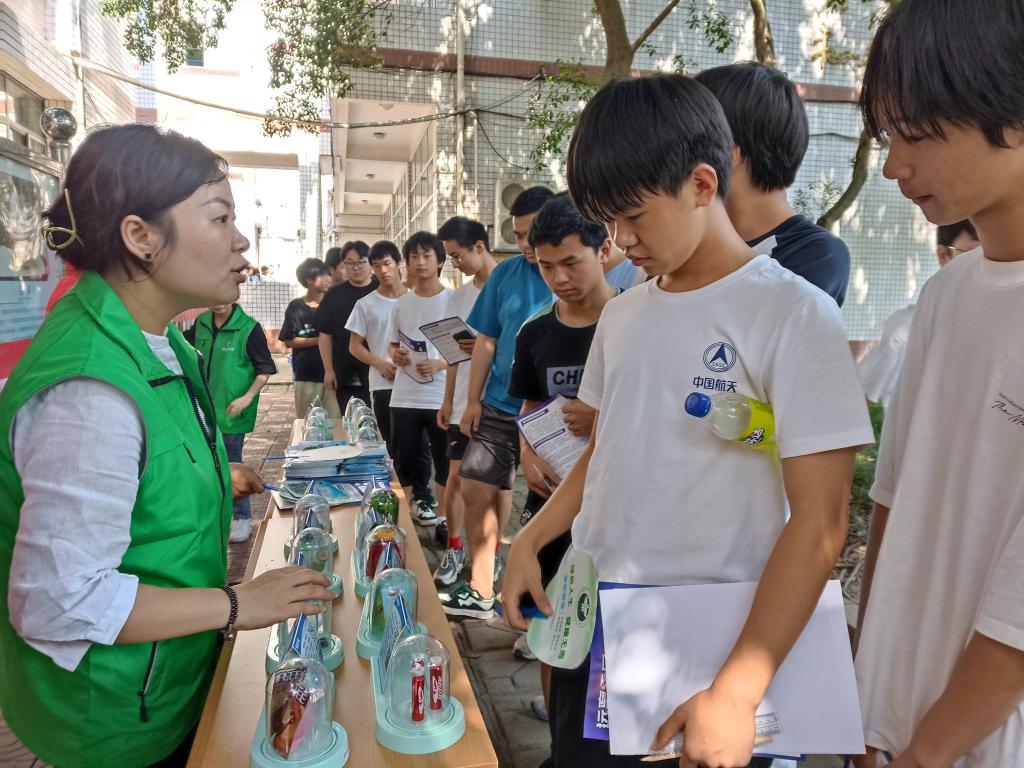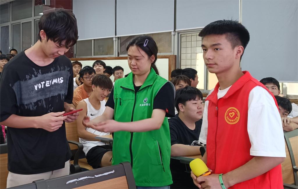 曾老师首先从毒品的演变历史、常见毒品的类型、我国禁毒的法律法规和毒品的危害几个方面为大家进行了讲解。针对网络传言“笑气”、“开心果”、“跳跳糖”等第三代毒品具有减肥作用,吸食后不会上瘾,对人体没有危害,就是一种防疲劳兴奋剂的错误说法,曾老师通过视频展播、图片展示、案例剖析等方式,为大家分析讲解了毒品的构成成份、人吸食毒品后对身体、精神和遗传等方面带来的危害,并告诫大家在日常生活中擦亮识毒之眼、筑牢防毒之心,时刻警惕毒品的诱惑和侵害。为活跃禁毒学习现场气氛,培训中曾老师还积极与在场师生进行互动交流,并精心准备了“禁毒小卫士”奖章和印有禁毒知识的笔计本、扇子等小礼品免费赠送给大家学习使用。