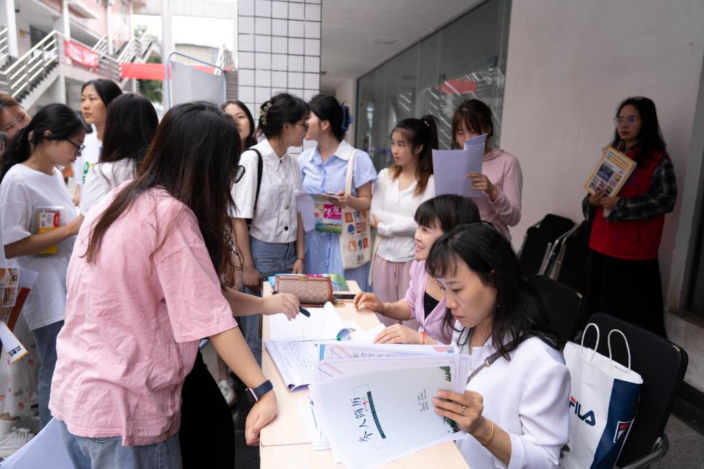 近日,“四川航天职业技术学院2023年度学前教育供需见面会”在四川航天职业技术学院三星堆校区劝学楼顺利举行。本次招聘会由学院就业处主办,共计24家单位以及400名学前教育学生参会,单位种类包括国投教育集团、幼教集团、幼教机构以及单独园所。