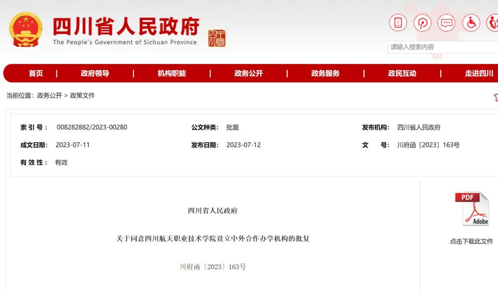 日前,四川省人民政府在官网上发布公告,我校与马来西亚彭亨大学合作设立的“四川航天职业技术学院彭亨智能制造学院”非独立法人中外合作办学机构成功获批,这是省内第二家专科层次中外合作办学机构,也是马来西亚彭亨大学在中国境内合作举办的唯一一个合作办学机构。