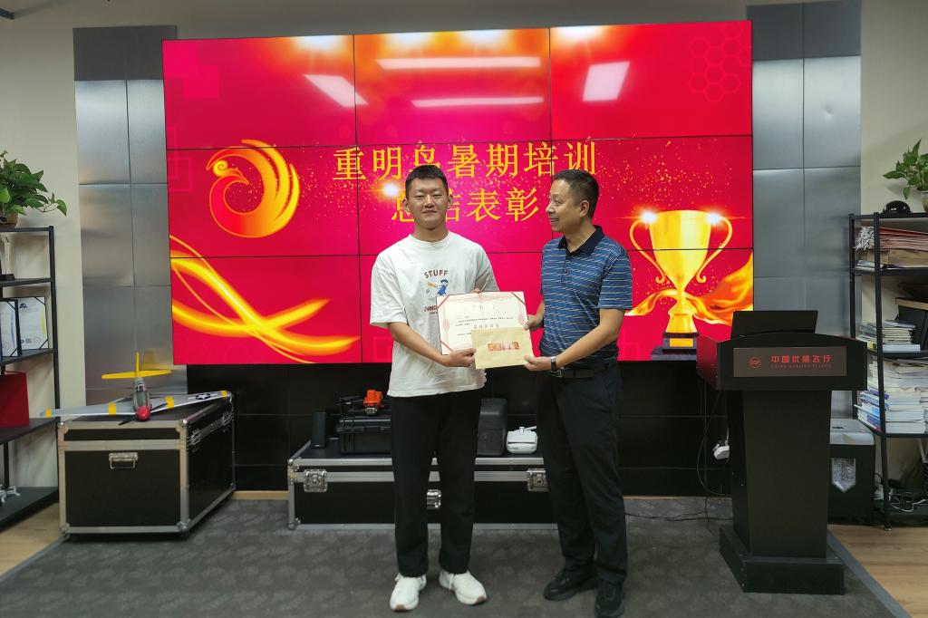 重明鸟通航针对航天学子的优异表现进行了表彰。来自飞行器制造学院G21无人机应用技术1班的任广被评为“最佳实习生”,并获得1000元奖金,同时取得了公司“直接录用”的资格。重明鸟通航表示下一步还会继续深化合作,选拔和培训更多教员从事无人机培训行业,推荐更多无人机专业的学生到无人机制造、应用和维修等行业工作。