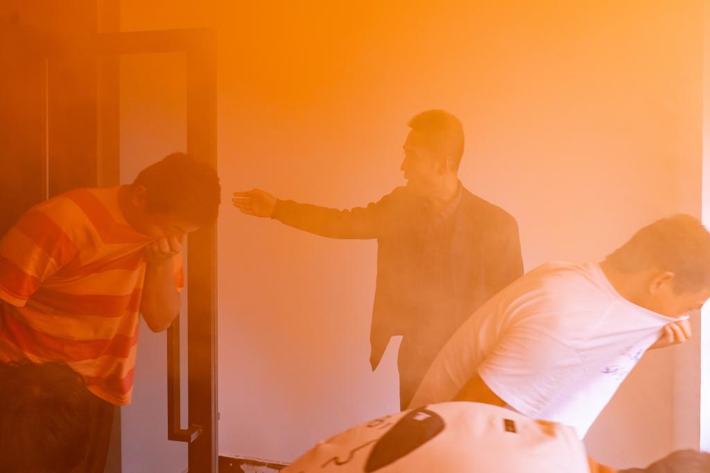 迎着阵阵浓烟,伴着声声警笛,当天下午15点整,三星堆校区神舟四号宿舍应急疏散演练正式拉开帷幕,演练师生按照学校应急预案规划路线,在楼层疏散引导员的正确指挥下快速撤离,经过3分12秒,所有演练师生全部安全撤离“着火”建筑,随及,学校灭火救援力量配合广汉市消防救援队对 “着火”建筑开展了应急扑救,经过2分35秒全力压制和扑救,“着火”部位被顺利扑灭,宿舍应急疏散和灭火救援取得了圆满成功。