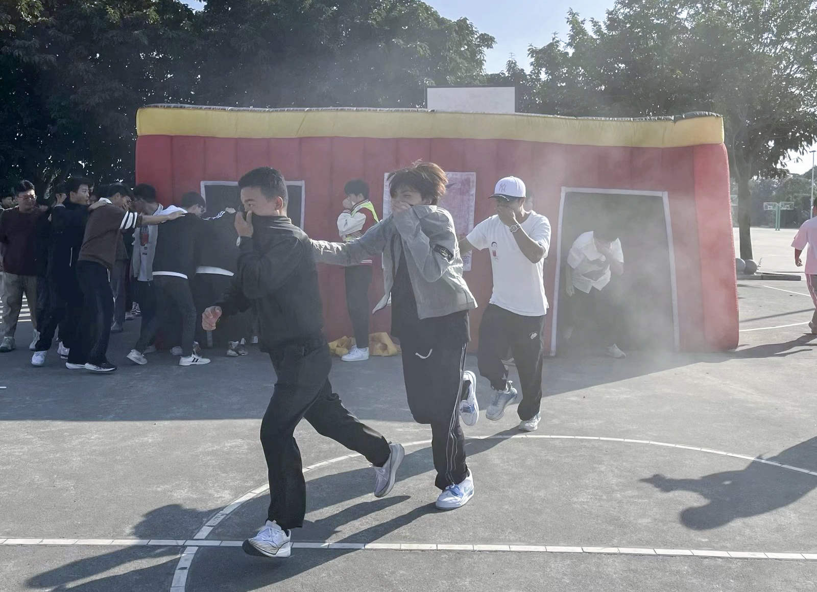 疏散结束后,为近一步提高校区师生防火自救能力,安全保卫处在三星堆校区篮球场,组织校区师生和宿舍、食堂员工开展了模拟逃生方舱体验和实战灭火演练。