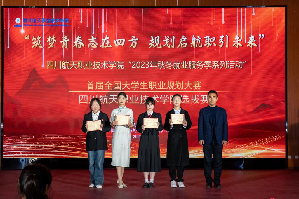 为贯彻落实党中央、国务院关于高校毕业生就业工作的决策部署,加强学生生涯教育和就业指导,增强学生的职业规划意识,提升学生的职业规划能力,促进高校毕业生高质量充分就业,根据《教育部关于举办首届全国大学生职业规划大赛的通知》(教学函〔2023〕1号)和《四川省教育厅四川省人力资源和社会保障厅关于举办首届四川省大学生职业规划大赛的通知》(川教函〔2023〕390号)要求,学校举办“首届全国大学生职业规划大赛四川航天职业技术学院选拔赛”,近日,校级选拔赛决赛在三星堆校区学术报告厅拉开帷幕。学校副校长夏华、戚炎、于一、周林,就业处、教务处,企业代表以及各二级学院领导、老师、同学们共400余人参加。本次比赛由就业处主办,教务处、学生工作部(团委)协办。
