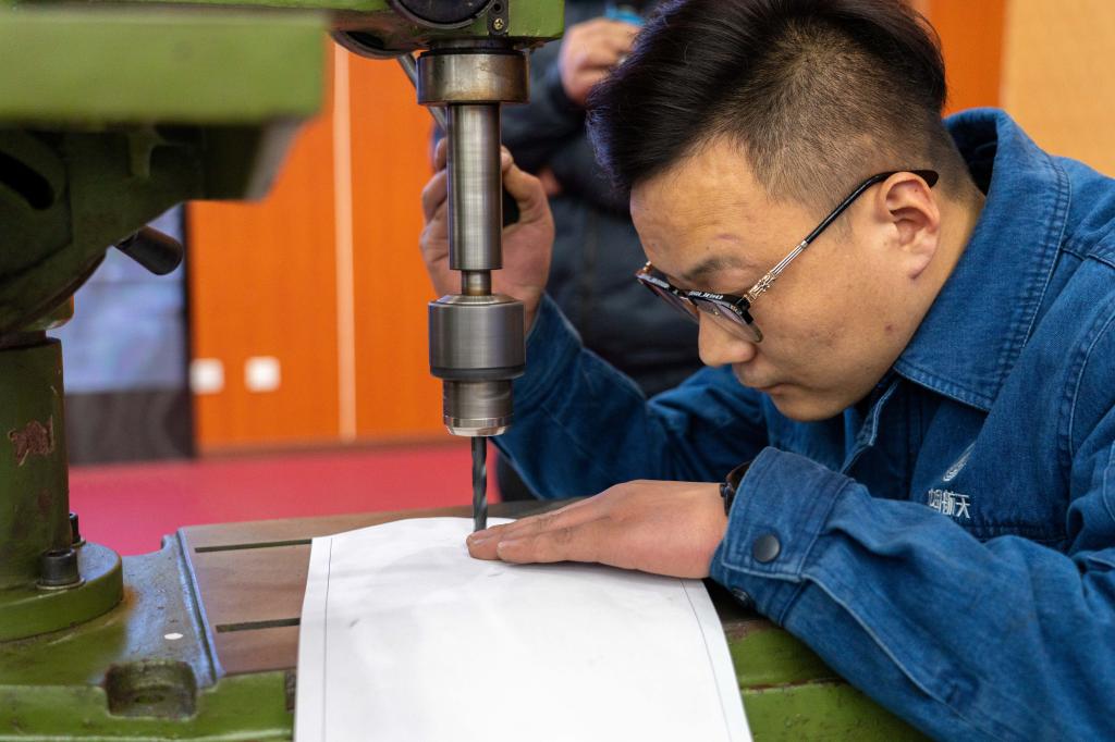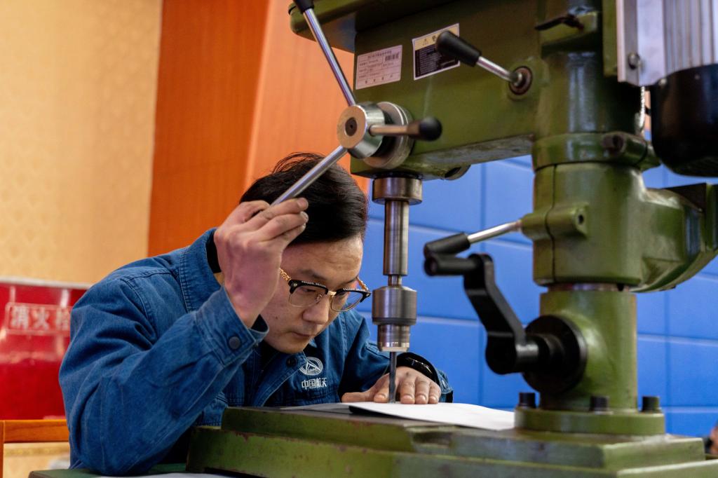 四川航天烽火伺服控制技术有限公司马占存,将一张白纸放在手机上,娴熟地操作钻床,将放在手机上的白纸钻透5个孔而手机表面没有任何划痕。