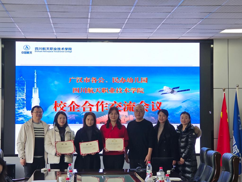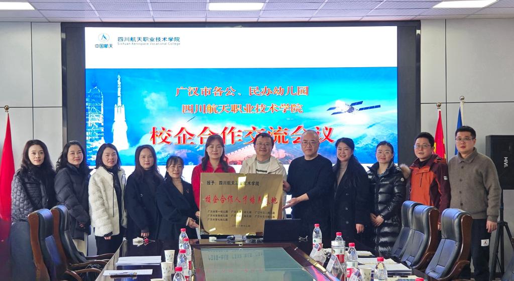 为进一步深化校企协同育人机制,拓宽学前专业和托育专业学生教学实践、实训平台,厚植培养能够适应行业发展需求、地方发展需求的学前师资人才,四川航天职业技术学院召开学前教育、托育专业“校企合作”交流会,与广汉优尚鸿景湾幼稚园、广汉市第一幼儿园、广汉市第二幼儿园、广汉市第三幼儿园、广汉市第四幼儿园、广汉市第五幼儿园、广汉市第六幼儿园、广汉市第七幼儿园等单位集体签约暨揭牌仪式。
