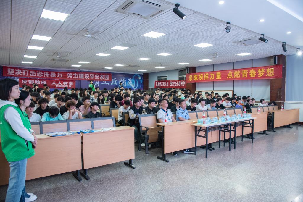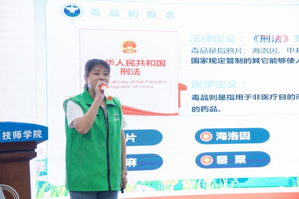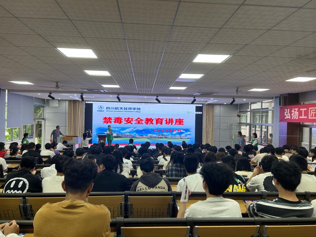 为认真贯彻落实上级禁毒安全相关工作精神,努力创建平安无毒校园,在第37个国际禁毒日即将来临之际,经学校安全保卫处邀请,6月4日,学校联合龙泉驿区街道禁毒办、龙泉驿区公安分局北干道派出所和万源路社区居委会,在龙泉校区南阶梯教室开展了以“珍爱生命远离毒品”为主题的禁毒专题教育活动,学校近300名师生接受了培训。龙泉街道禁毒办曾琪老师受邀主讲。