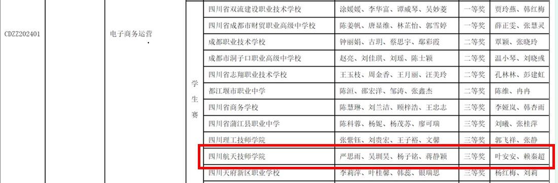近日,成都市教育局公布了2024年成都市中等职业(技工)学校师生技能大赛获奖名单,我校学生在《电子产品设计与应用》和《电子商务运营》赛项中取得了优异成绩,为学校赢得了荣誉。