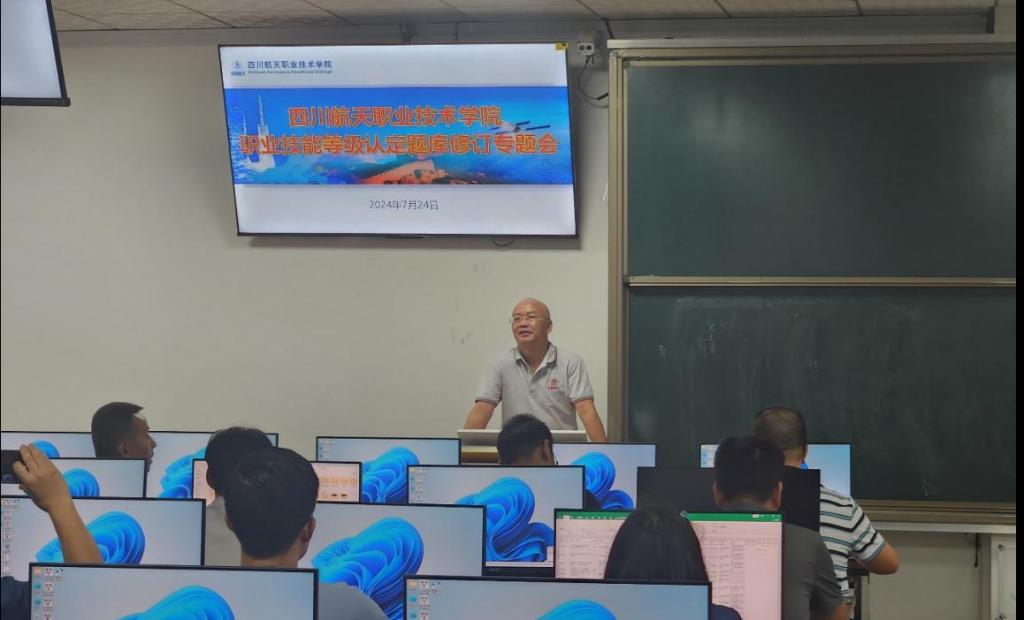 2024年7月24日,四川航天职业技术学院在龙泉校区南二楼培训室召开了职业技能等级认定题库修订专题会议,各二级学院负责人、相关职业(工作)题库建设负责人及继续教育部工作人员参加了此次会议。