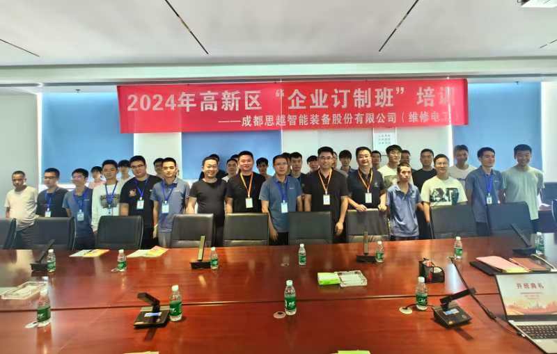 为加强校企合作,深度提升企业骨干技术水平,2024年8月23日下午1点,成都思越智能装备股份有限公司企业“订制班”开班仪式在公司八楼会议室隆重举行。成都思越智能装备股份有限公司常务副总裁刘涛、四川航天职业技术学院继续教育部培训项目负责人杨格以及维修电工班30名培训学员共同参加了开班典礼。