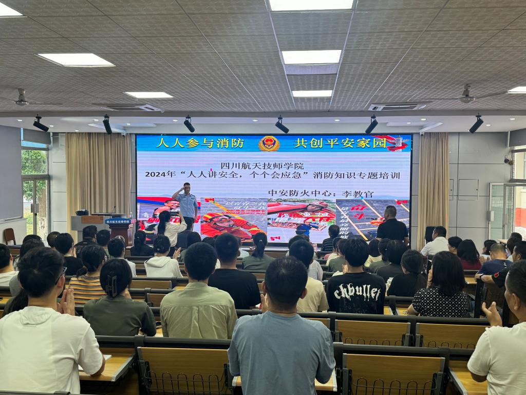为深入推进消防安全宣传工作进校园,切实增强全校师生消防安全意识,不断提高面对火灾、地震等突发情况的应急自防自救能力和自我保护能力。9月4日下午,四川航天技师学院邀请成都中安消防中心李教官进校,对全体教职员工开展消防安全知识培训,并组织2024级新生开展应急疏散和灭火演练。
