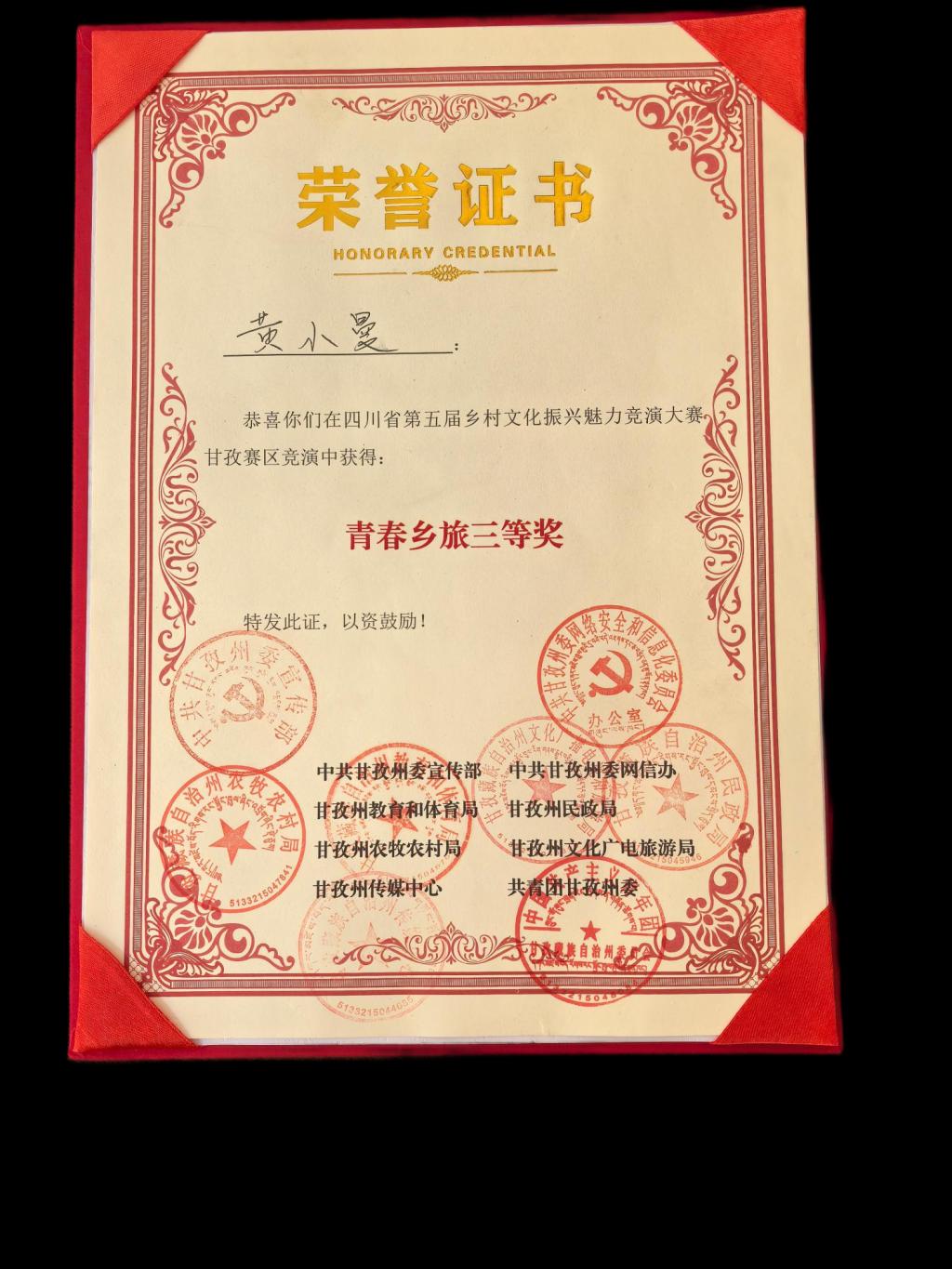 近日,2025 年四川省第五届乡村文化振兴魅力竞演大赛甘孜赛区赛事落下帷幕,四川航天职业技术学院“星河筑梦”三下乡实践团队作品脱颖而出,荣获“青春乡旅”赛道三等奖!