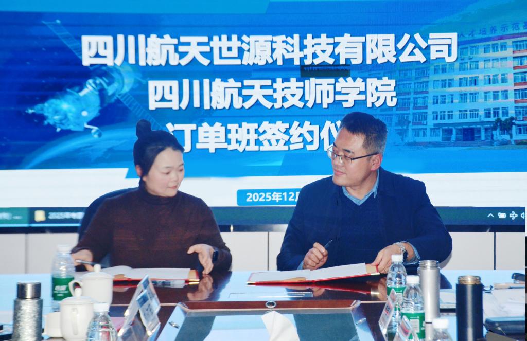 为精准对接航天高端制造与新能源汽车产业前沿,深化产教融合,创新人才培养模式,2025年12月22日,四川航天技师学院分别与四川航天世源科技有限公司、吉利汽车集团举行订单班签约仪式。此次签约标志着学院在校企协同育人方面迈出重要一步,开启了“招生即招工、入校即入企”的订单式人才培养新篇章。