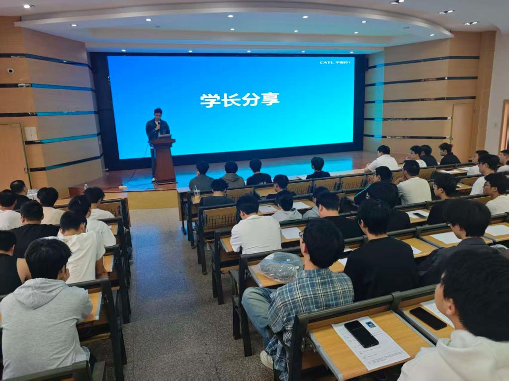 近日,车辆工程学院2025届优秀毕业生、现就职于全球动力电池巨头——宁德时代新能源科技股份有限公司的陈太伟校友,借宁德时代本年度校园招聘之机,专程返回母校,为车辆工程专业的学弟学妹们带来了一场主题为“从校园到职场:新能源浪潮下的成长之路”的精彩分享会。