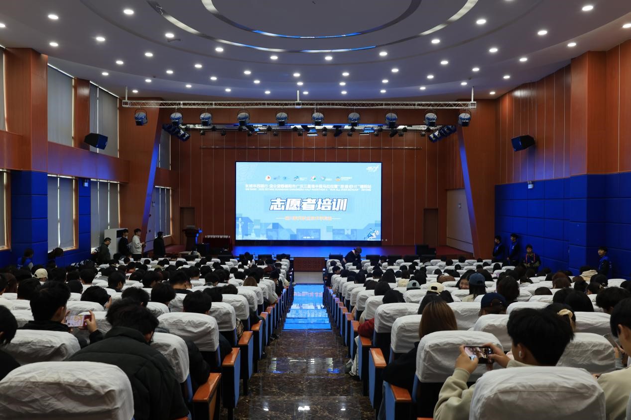 2025年10月23日下午,四川航天职业技术学院学术报告厅内气氛热烈,2025年德阳市广汉三星堆半程马拉松暨“跑遍四川”德阳站志愿者专场培训会在此顺利举行。本次培训旨在为即将于11月2日到来的赛事保驾护航,对全体来自四川航天职业技术学院的志愿者同学们进行了系统性的岗前指导。