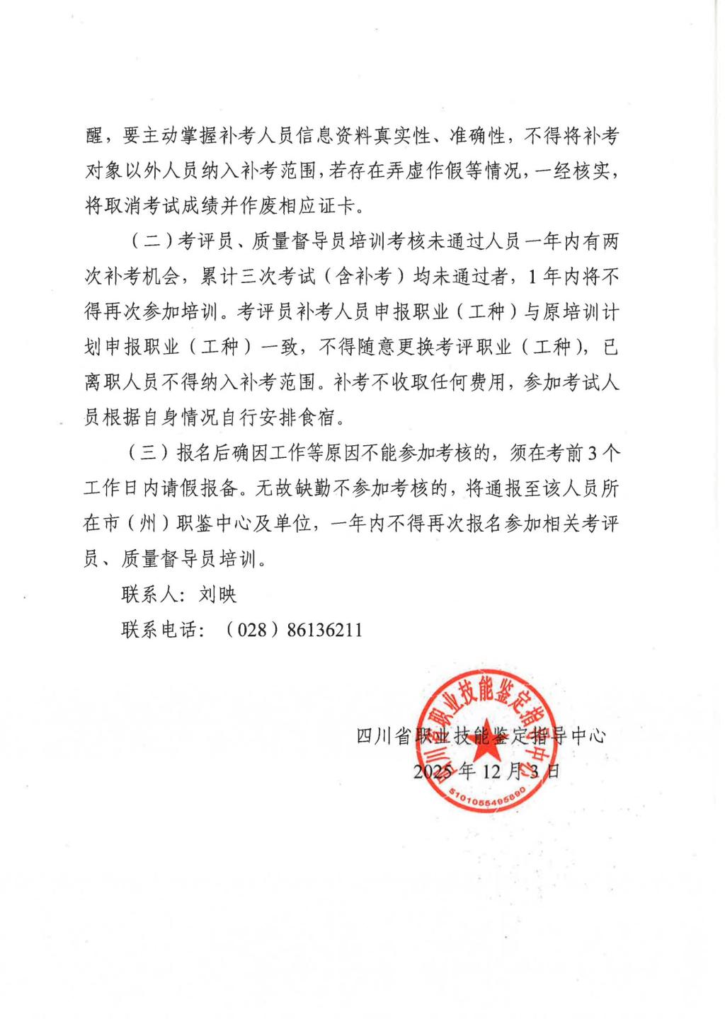 关于省中心举办2025年第二期技能人才评价考评员、质量督导员补考的通知